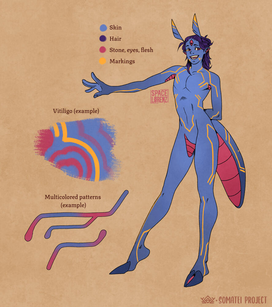 Les Somatei sont ce qu'on appelle une "semi-open species", une espèce fictive de personnages vivant dans un univers auquel vous pouvez contribuer ! Rejoignez la comunauté !(Note: c'est en anglais)